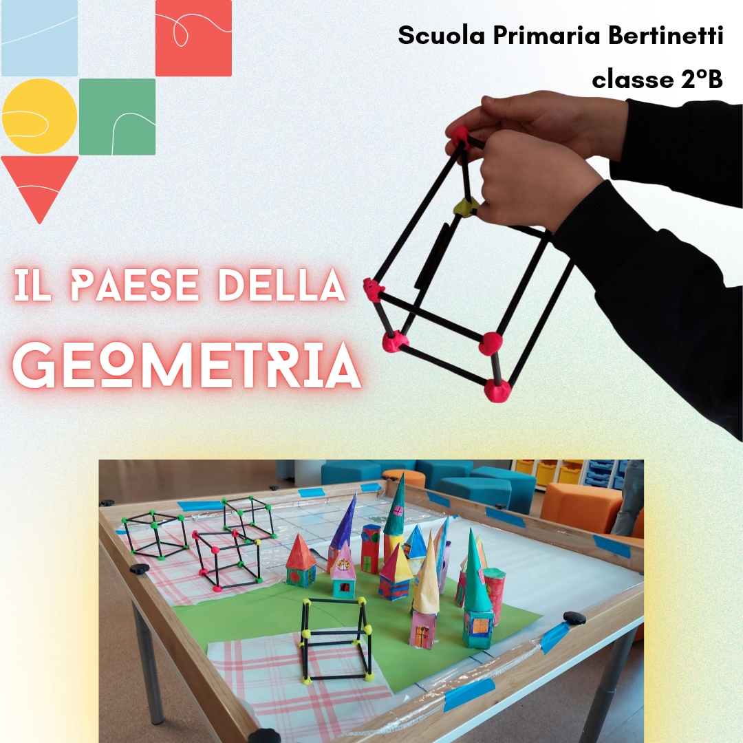 Dopo aver letto l'albo illustrato "Mirtillo e il paese della geometria" (Dudine - Dusi), i bambini si sono cimentati nella costruzione del paese di Geometria.