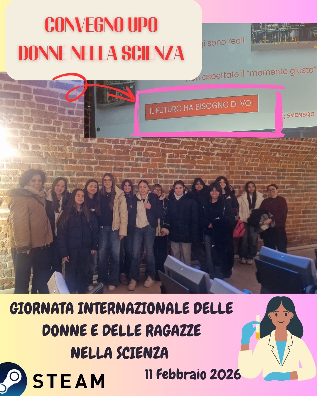 Oggi 11 febbraio 2026 le ragazze delle classi 3A-3D-3E a indirizzo STEAM della scuola secondaria di primo grado "S. Pertini" hanno partecipato alla seconda edizione del Convegno organizzato dall'UPO sul tema delle Donne nella Scienza ascoltando in modo partecipe e interessato i racconti delle professioniste in carriere STEAM e ricercatrici universitarie su temi importanti come l'abbattimento delle differenze di genere, la motivazione personale e soprattutto la bravura delle ragazze nelle discipline scientifiche. Noi ci crediamo da sempre, un modo davvero significativo di festeggiare questa giornata carica di significati.